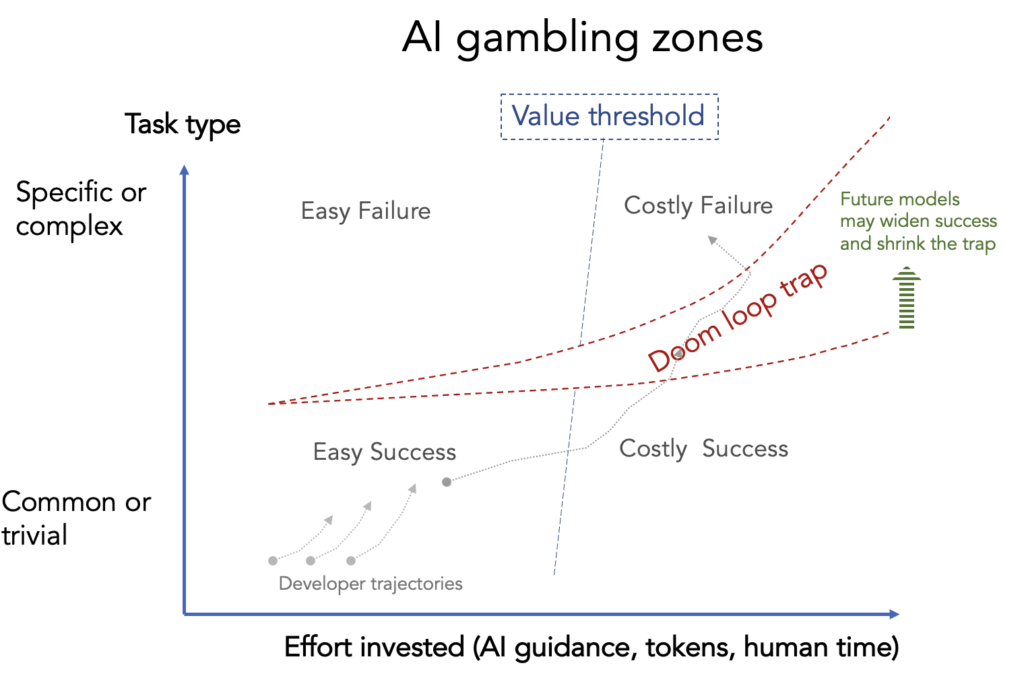 A picture is worth thousands of tokens. A rough map of AI gambling zones in software development.